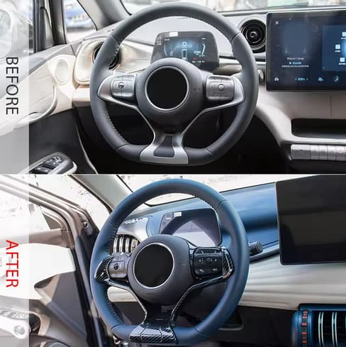 Upgrade your BYD Dolphin interior with custom-fit steering wheel trims. Available in premium carbon fiber and ABS finishes. Protects your steering wheel from scratches and wear while enhancing grip and style. Precision-cut for 2023-2026 models with easy 3M adhesive installation. Shop now!